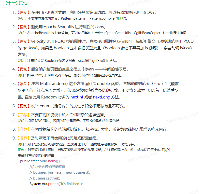 对于注释的要求: 1.能准确反应设计思想和代码逻辑; 2.能描述业务含义,使其他人能立刻了解到代码背后的信息。